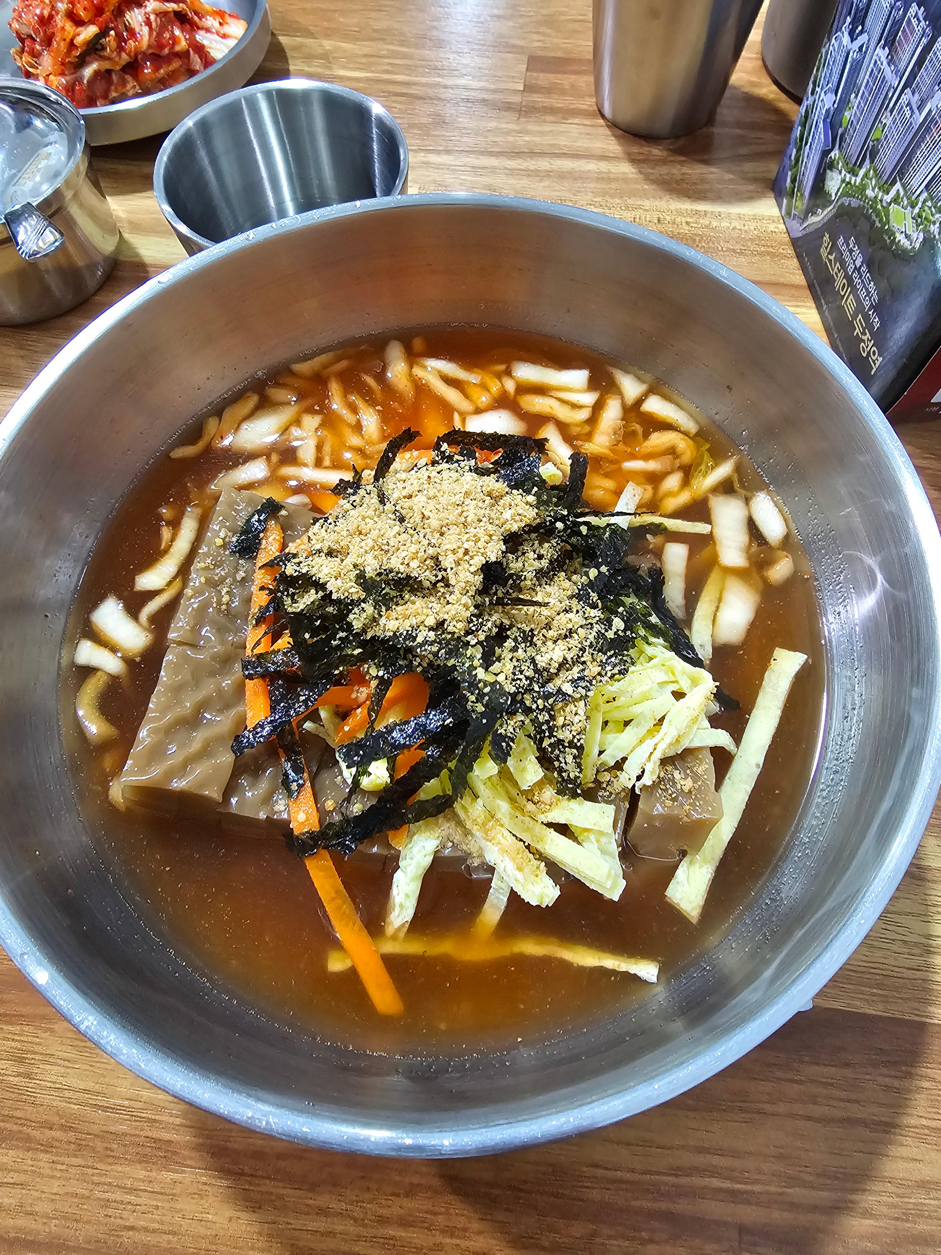 국물은 멸치 육수 베이스 같았고, 과하지 않은 간으로 묵의 고소한 맛이 잘 살아있어요.
